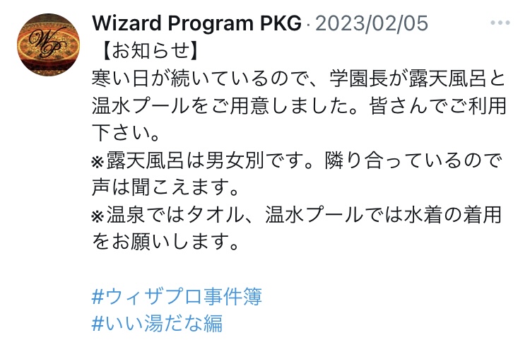 ■ウィザプロ事件簿「いい湯だな編」