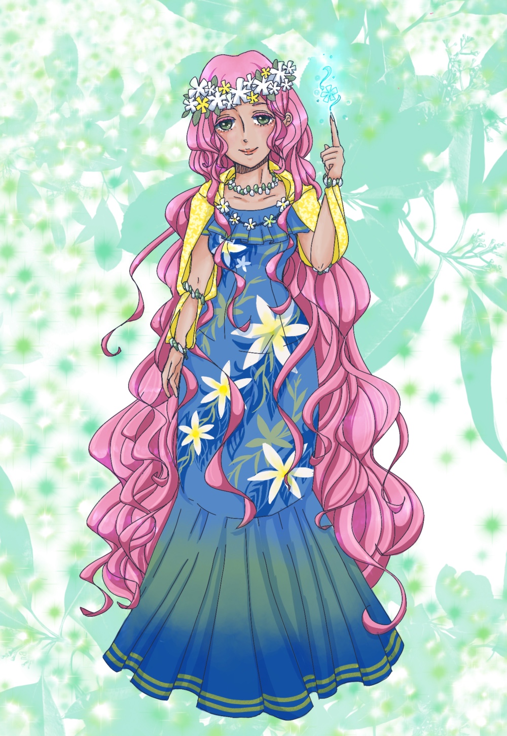 魔法の触媒は頭の花飾り。